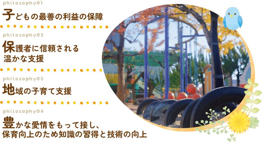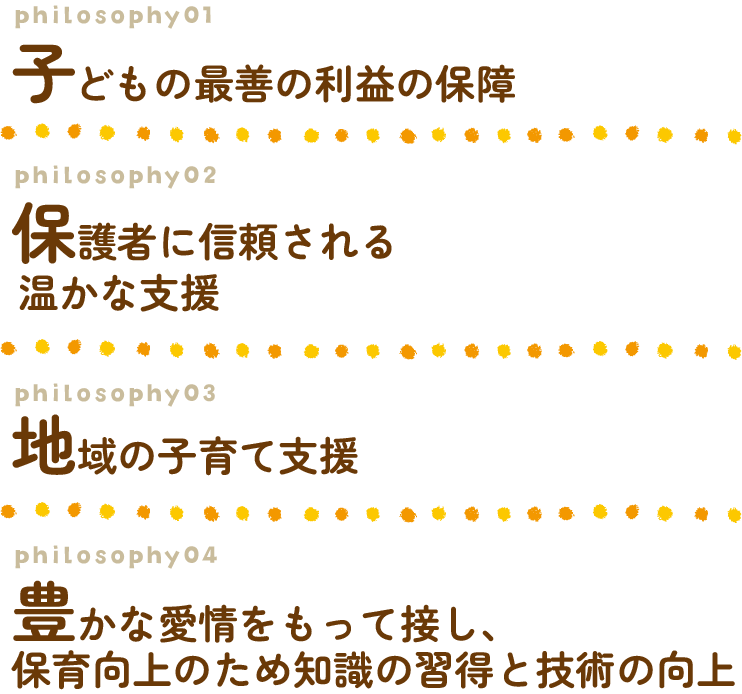 Instagram 大里東みどり保育園TOP 保育の内容 最近のようす Hamburger Toggle Menu みのり保育園TOP 保育の内容 最近のようす Hamburger Toggle Menu みずほ保育園TOP 保育の内容 最近のようす Hamburger Toggle Menu 採用情報 Instagram 保育園の隣には大里東小学校、南には市民センター児童館があり、交流も多くあります。園庭も広く、登園するとすぐ戸外に飛び出していき、全身を使って遊んでいます。「保育園は昼間の大きなおうち」「保育士は昼間のお母さん」の思いで日々子どもたちの保育をしています。 稲沢市の南東に位置し、田畑に囲まれ、緑が多く、自然に恵まれたところです。交通量の多い道路から一歩中に入っており、送迎時の子どもたちの安全も確保されています。春は花摘み、夏はザリガニ取り、秋はドングリ拾い、冬はマラソンなど、身近な自然を十分楽しんでいます。 緑の木々に囲まれた井之口団地の中にある保育園です。園周辺には田畑や用水があり、自然の変化に気づく機会が多くあります。園庭では遊具で遊んだり、子どもたちに大人気の大型三輪車に乗ったり、友だちを誘って鬼ごっこをしたり、いつも子どもたちの歓声が響いています。 愛知泉福祉会のAichiizumiの文字をデザインしたマークです。同じ理念のもと、1つ1つの園が違う個性を発揮している様を鮮やかなビタミンカラーを使って、にぎやかで元気な雰囲気にしています。園訓である、太陽・月・緑の色を使用しています。「保育園はもう一つのおうち」という想いを、三角が一つのおうち(丸は窓、下にあるのは入り口)という表現をし、そこで育った子どもたちが元気に巣立っていく様子をイメージしています。 社会福祉法人 愛知泉福祉会 法人本部: 〒492-8164 愛知県稲沢市井之口大坪町79番地TEL : 0587-23-4455 / FAX : 0587-23-2250 情報公開について プライバシーポリシー